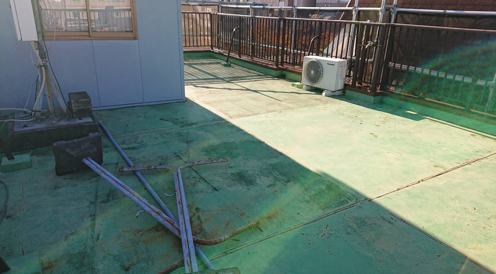 屋上やバルコニー、ベランダなどが以下のような状態になっていると、その場所が劣化している状態になっています。早急に、ウレタン工事などの防水工をしたほうが良いでしょう。